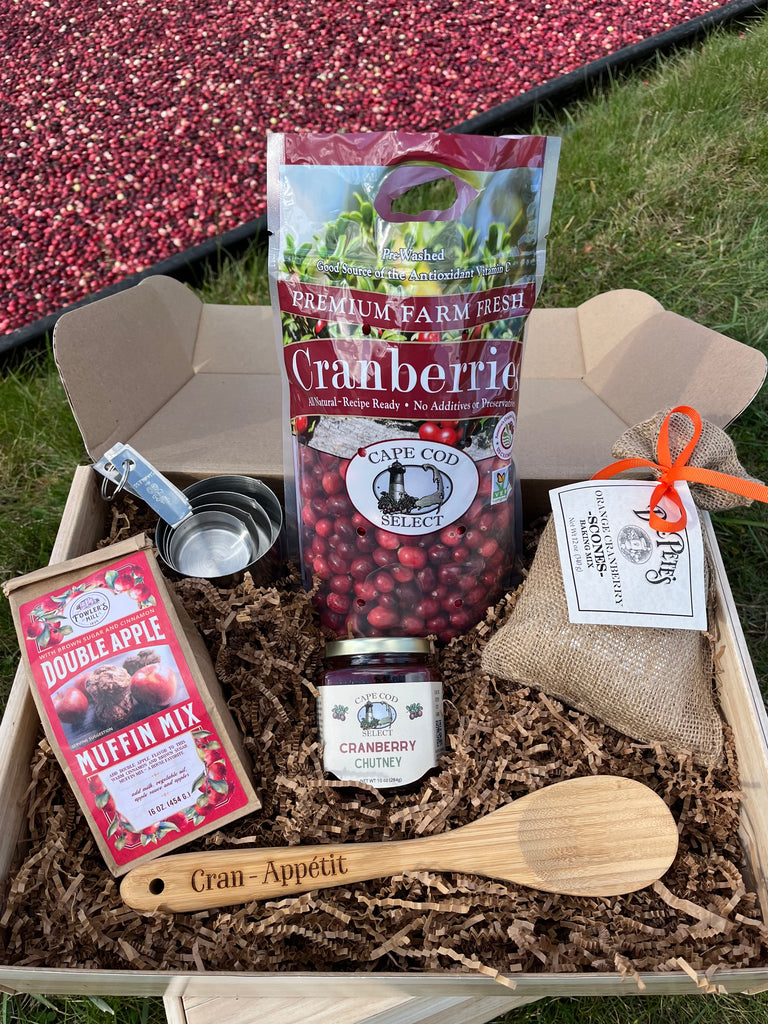 The Cranberry Baker Box is a perfect gift for the home baker, host/hostess, or even yourself! Bake up delicious cranberry treats by adding our fresh cranberries and topping them with our cranberry chutney.